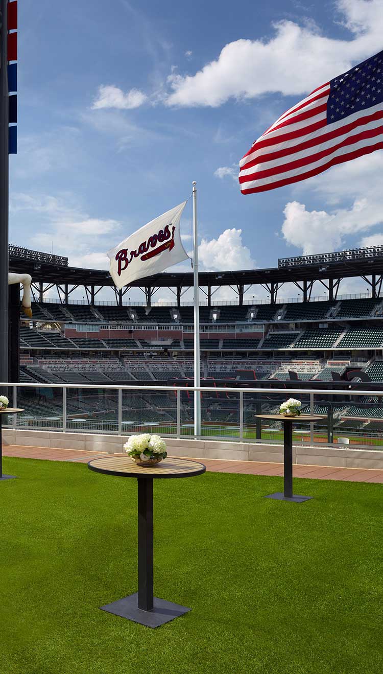 Offer your guests their choice of activities with a wedding at the Battery Atlanta. This coveted neighborhood is lined with dining and entertainment at every turn, from Truist Park to the Coca-Cola Roxy music venue. Baseball fans can plan their wedding activities around a game-day weekend for a winning experience for the whole family. Welcome up to 450 guests for a stunning celebration in the Battery Ballroom. Our wedding specialists help coordinate flawless events.